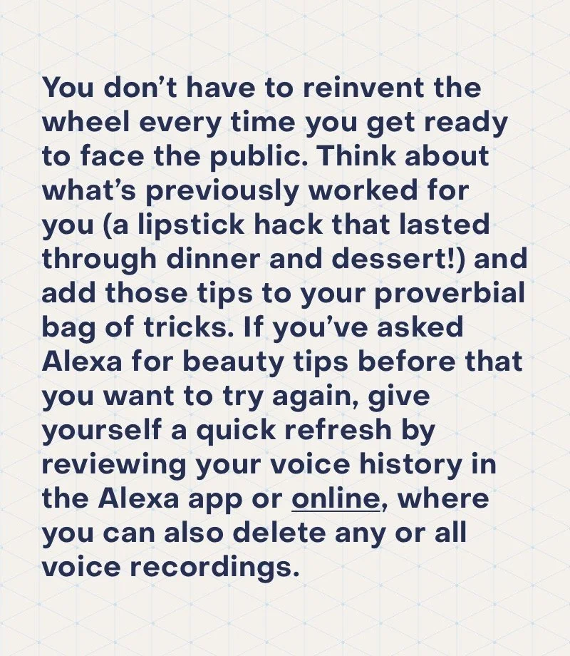 Taking your beauty routine to the next level may seem like a big undertaking, but with Alexa voice technology, it couldn’t be easier—or more secure. Here’s how to get started. (See the interactive piece here.)